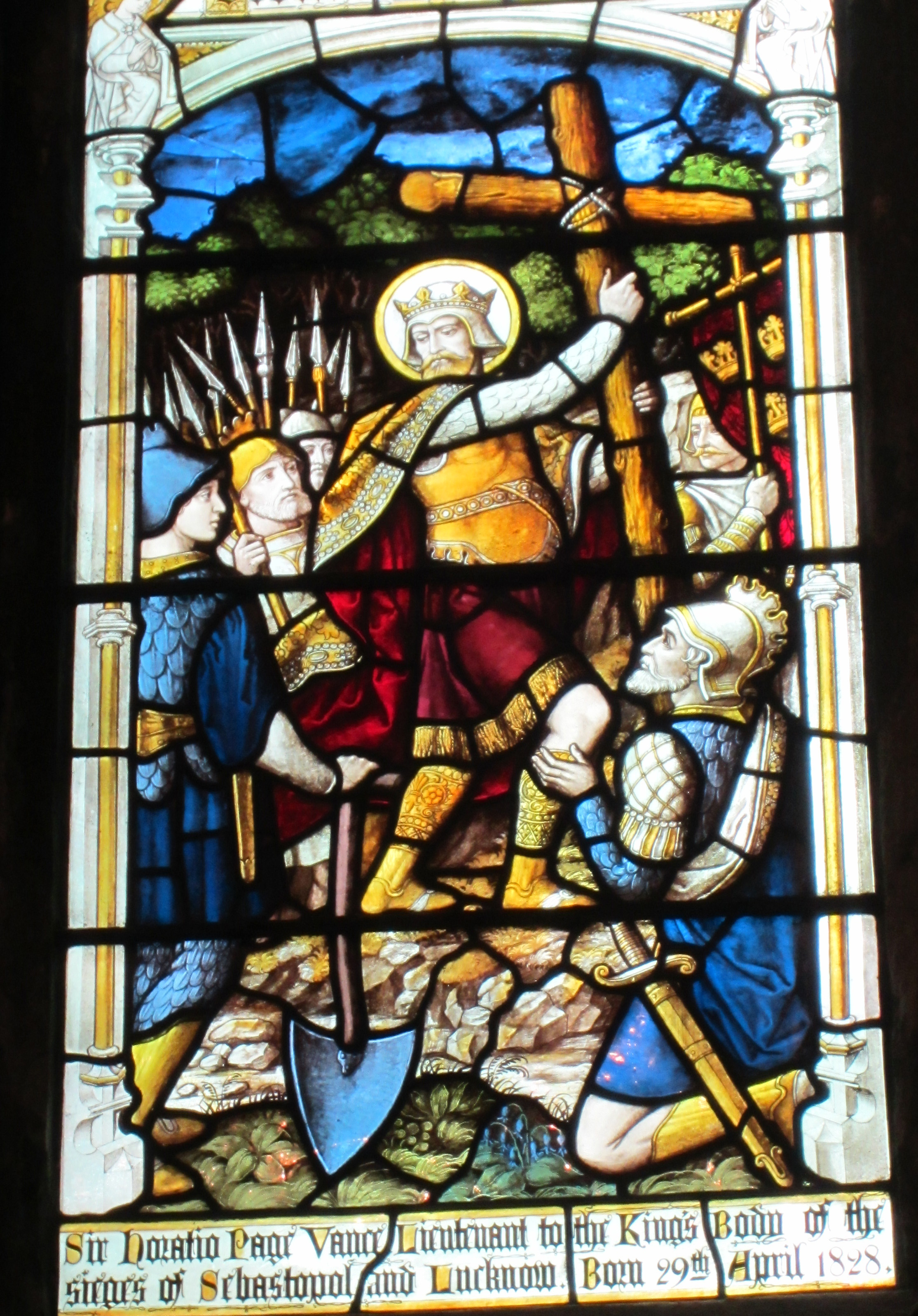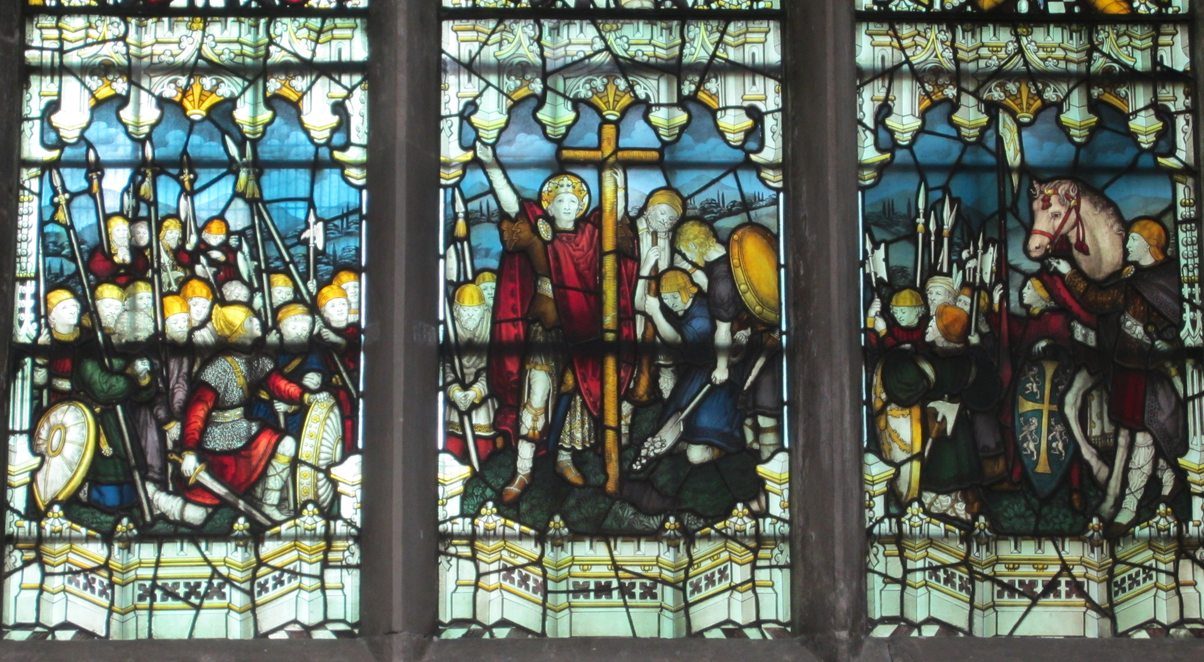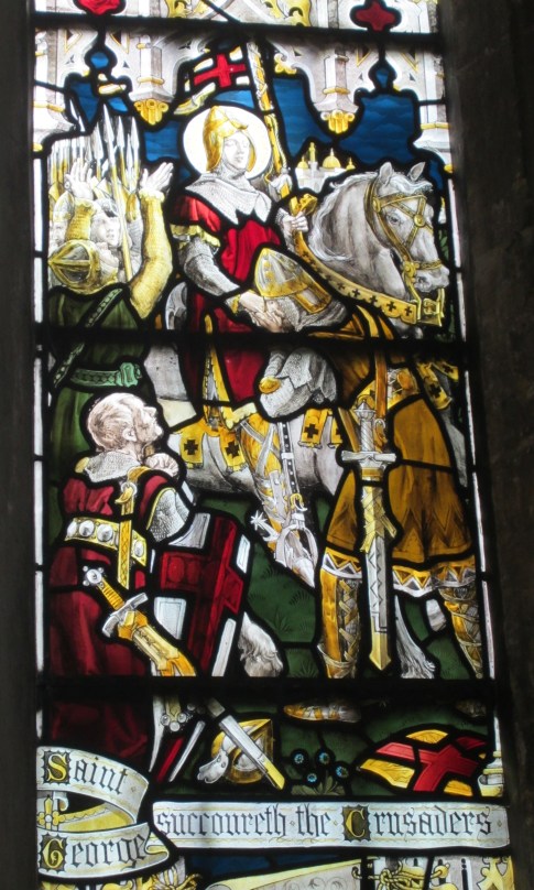 St.George, patron saint of England, urges on the Crusaders (Holy Trinity Church, Stratford-upon-Avon).