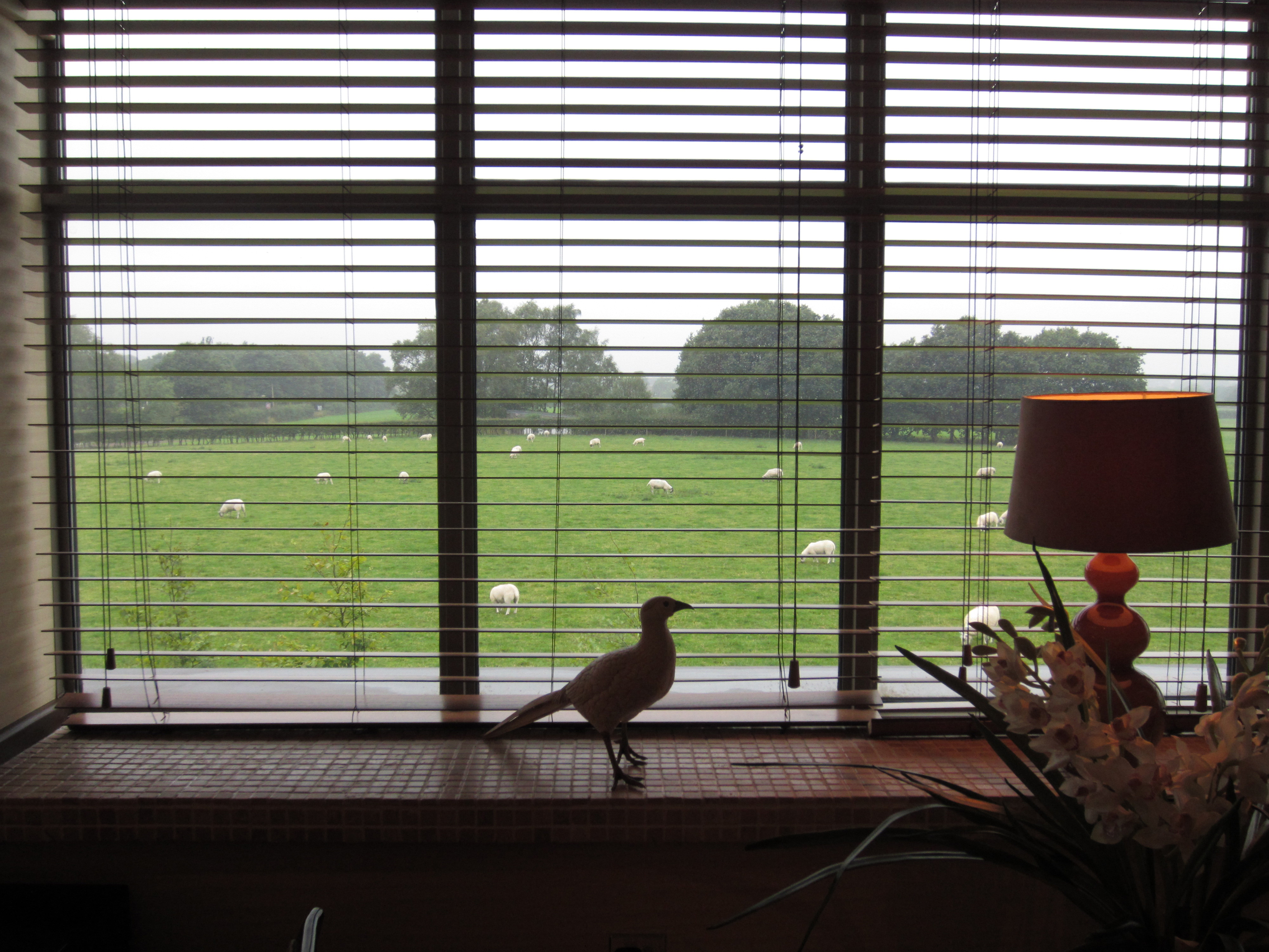 The restful view of sheep grazing outisde Bennet’s Restaurant, Wrightington, where I failed to understand the word “koof-fa”.