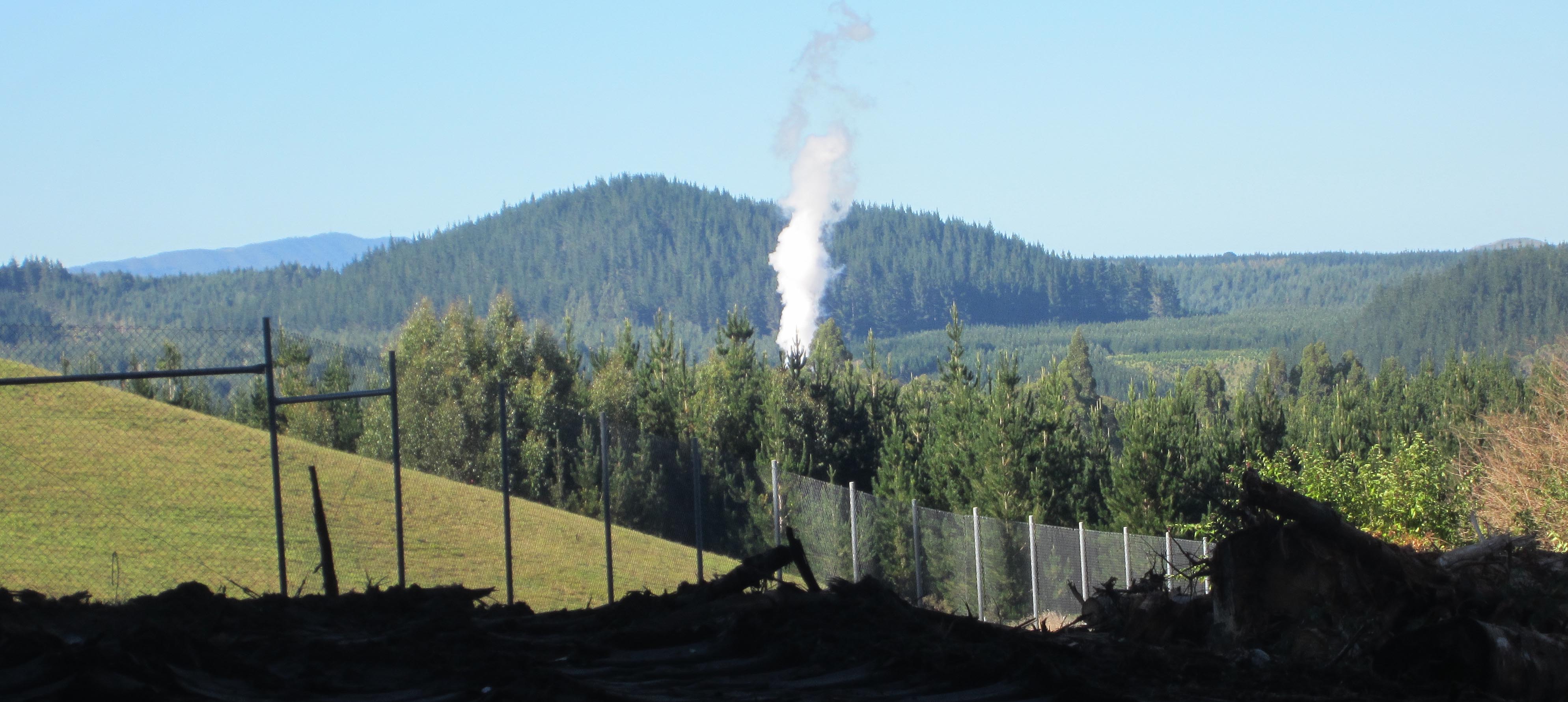 Unsightly swathes of felled pine forest (centre and right) on a headland above Queen Charlotte Sound.