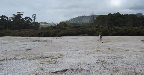 Shortly after midday we reached the first of two simple shelters located roughly one third and two thirds of the way along this segment of the track. It was equipped with seats, a bench, a toilet and a tank of rainwater. As we sat in the shelter munching on bread rolls a wild weka strolled in. Completely unafraid (though it took care not to come within grabbing range) it snacked for a while on crumbs from our bread rolls before stalking off into the shrubbery. It didn’t try to filch anything from us, but others have not been so lucky. In the guest book at the shelter one exasperated visitor had written “The bird steals everything!”